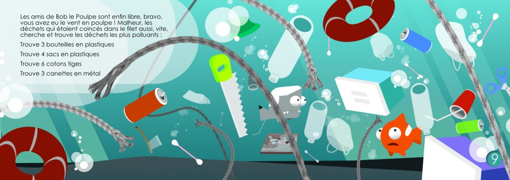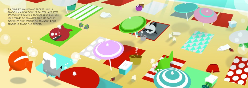 Petit poisson : Crée avec Oliv. Livre jeu à destination du jeune lectorat. Toujours dans les tiroirs après l’avoir proposé a L’asso Surfrider la même année que Les Schtroumpfs à la plage Tempi, je retenterais ma chance